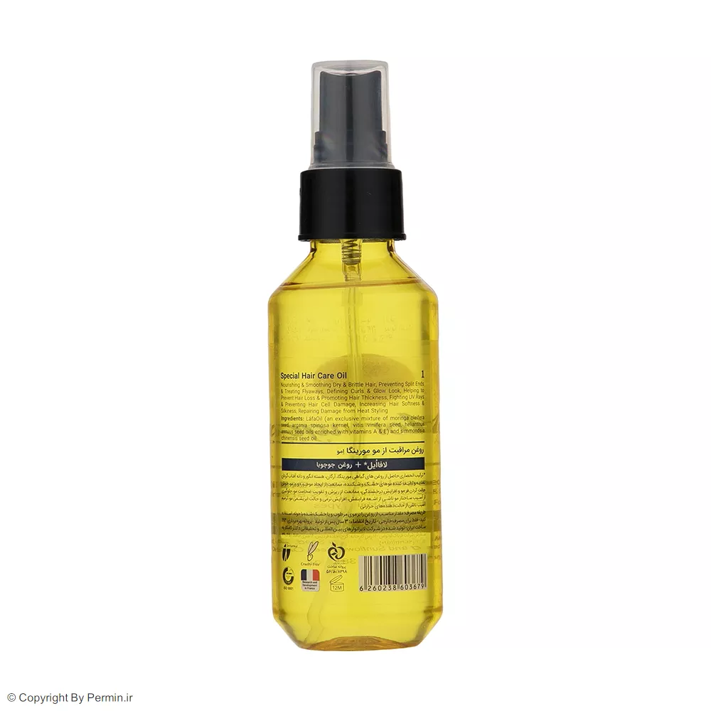 LáfaOil (لافااُیل: ترکیبی انحصاری شامل روغنهای گیاهی مورینگا، آرگان، هسته انگور و دانه آفتابگردان و ویتامین A و E) + کافئین و روغن میدوفوم